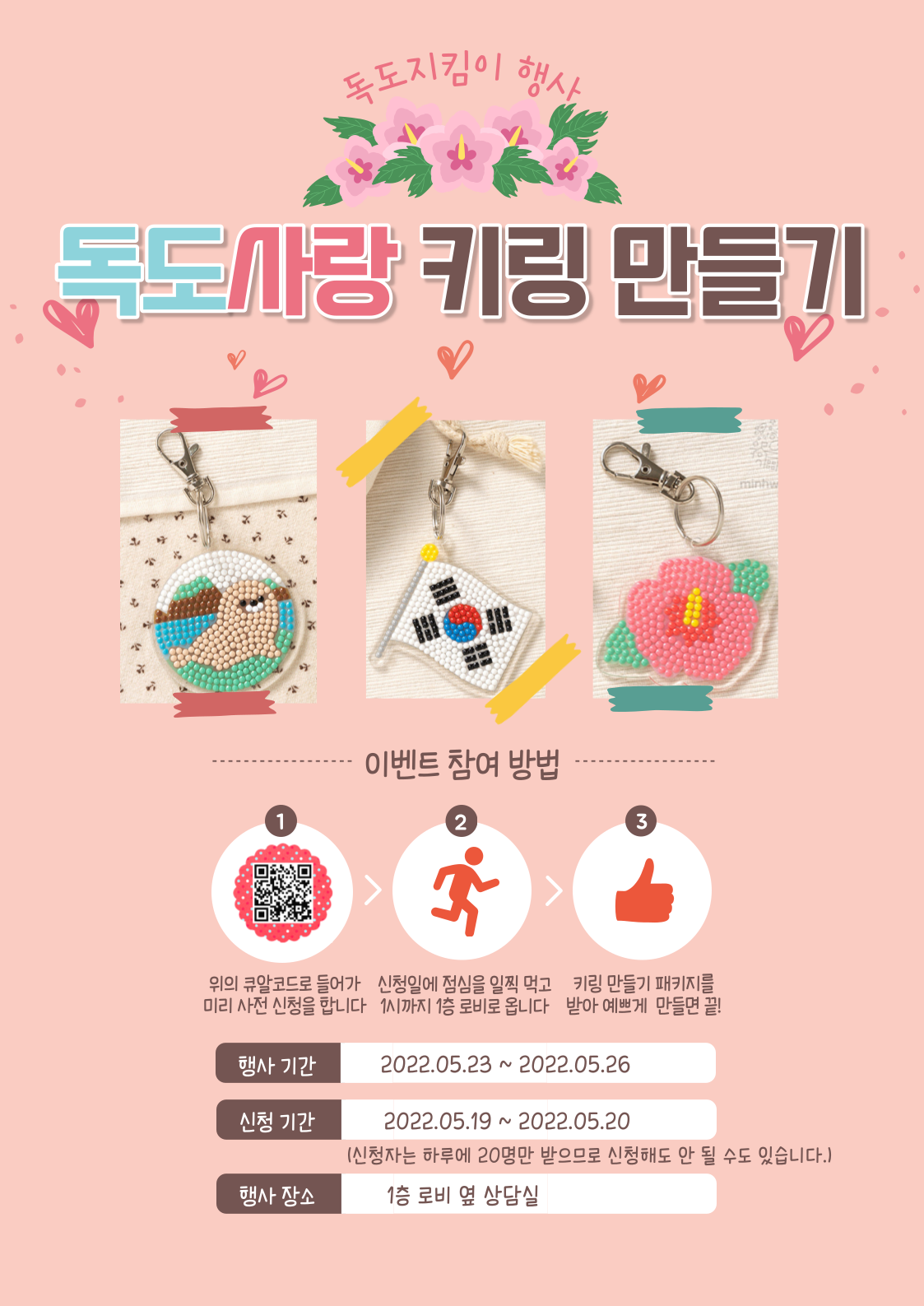 해성중학교 독도지킴이 '해도지'에서 5월 23일부터 26일 동안 독도사랑 키링만들기 행사를 진행했습니다.