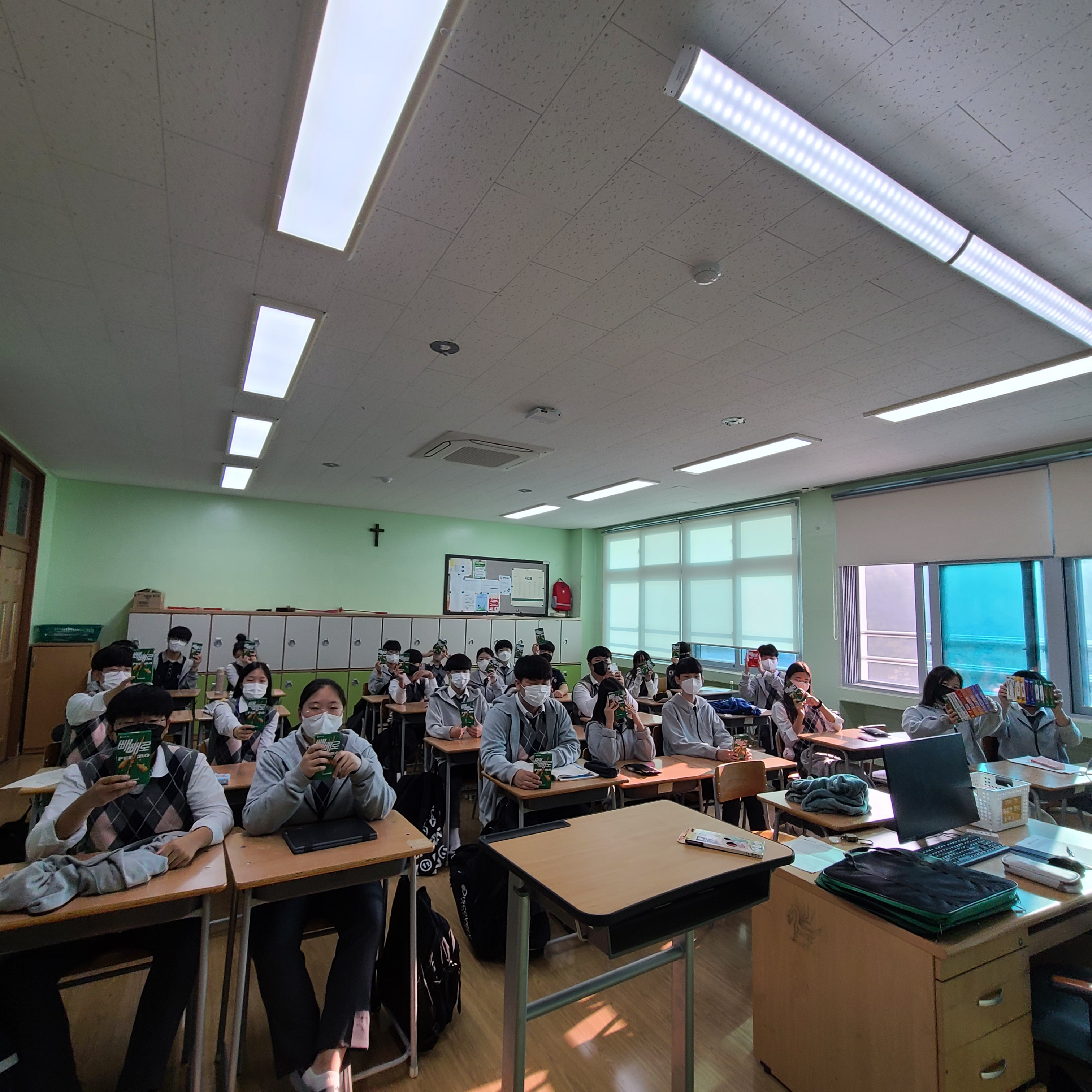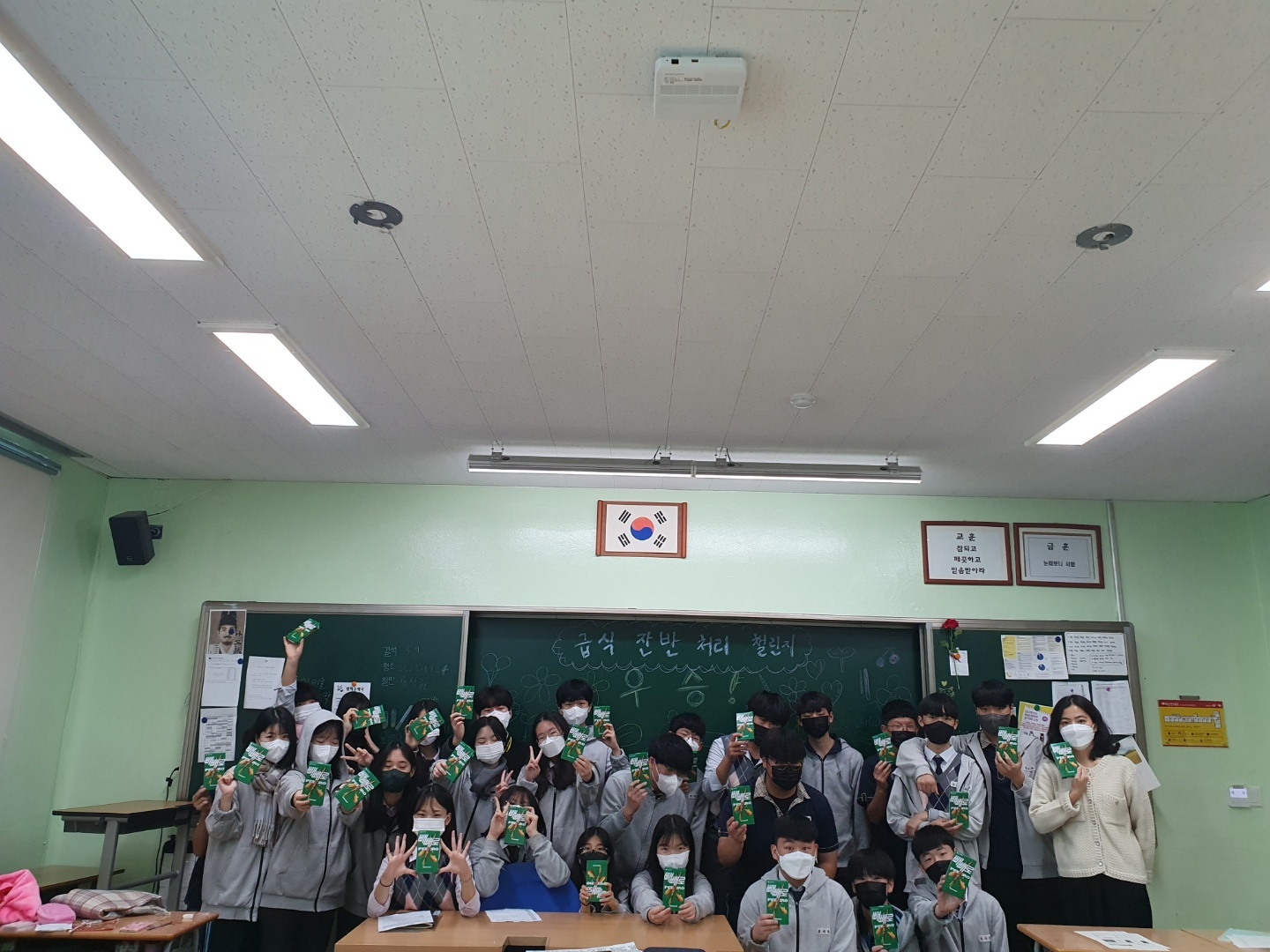 기후천사단과 함께하는 2학기 <잔반제로 캠페인> 11월 8일부터 10일까지 3일간 기후천사단 활동을 소개합니다. 해성중학교 급식이 맛있다는 얘기 많이 들어보셨지요? 맛있는 급식이지만 그래도 발생하는 잔반을 조금이라도 줄여 환경을 보호하자는 취지에서 잔반 제로 캠페인을 실시하였습니다. 남기는 음식을 줄여 건강한 식습관도 기르고, 자원과 환경도 보호하고, 스티커를 많이 모은 반에는 빼빼로 상품까지 증정하는 1석 3조의 행사였습니다. 행사는 끝났지만 꾸준히 잔반제로를 실천하는 해성인들이 되길 기대해봅니다.^^