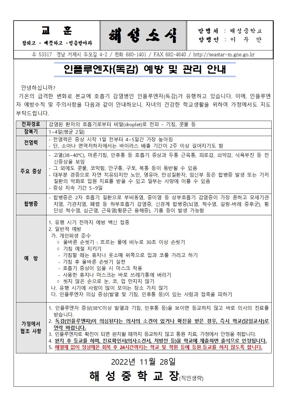 인플루엔자(독감) 예방 및 관리 안내.hwp