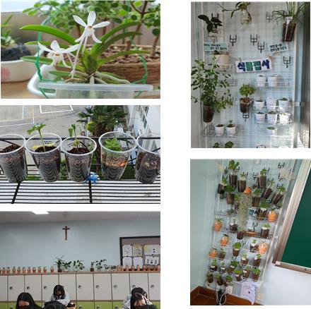 ·다양한 종류의 식물(장미허브, 대엽풍란, 소엽풍란, 호야, 수염틸란드시아, 이오난사, 개운죽, 스파티필름, 테이블야자, 스킨답서스 등) 키우기를 통한 생태감수성의 향상
