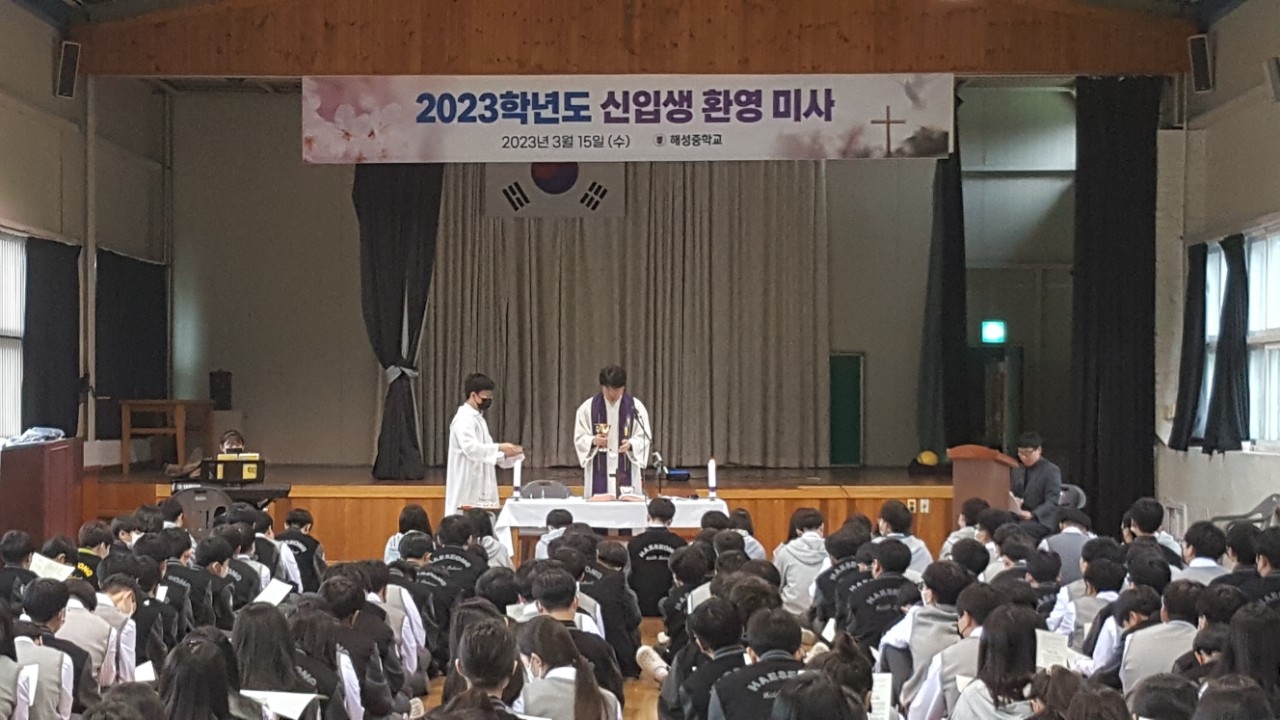 신입생 환영 미사는 새롭게 시작하는 우리 1학년 모두의 꿈과 희망을 응원하는 행사입니다. 교직원을 포함한 모든 학교 구성원들이 마음 다해 응원 하였습니다.